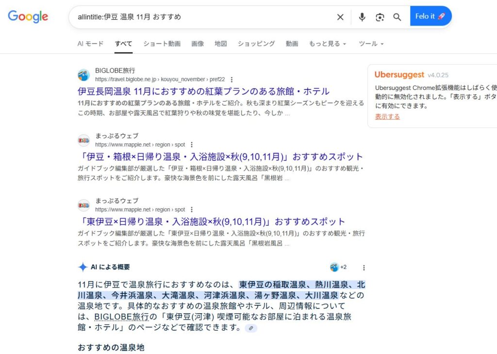 結論は、あんまり考えすぎても仕方がないから、自分の宿に関係性関連性のあるキーワードで、ライバル記事が少ないか、弱いなら、記事を書いて、HP内に積み上げていき、資産化していきましょう。