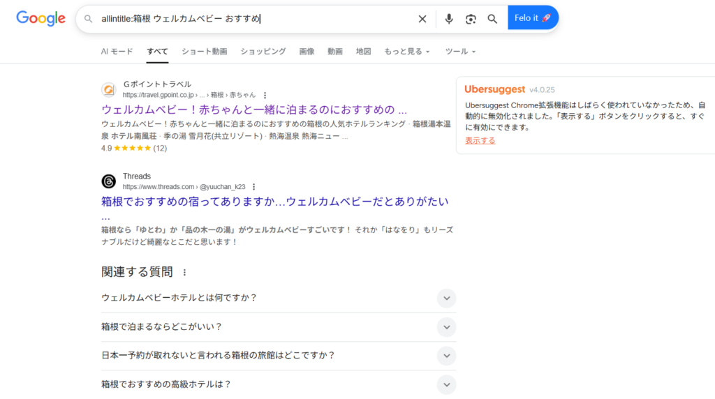 例えば、「箱根 ウェルカムベビー おすすめ」というキーワード